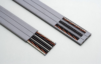 中心に補強線を配置しているため、エレベータなどの繰り返し屈曲される用途で高い耐久性を発揮します(補強線のないタイプも製造可能)。お客さまの多様な用途に合わせて、多彩な線を組み合わせることができます。