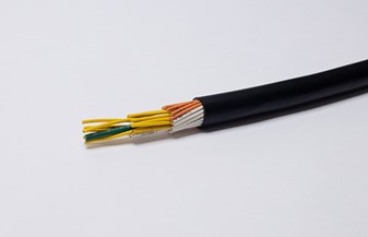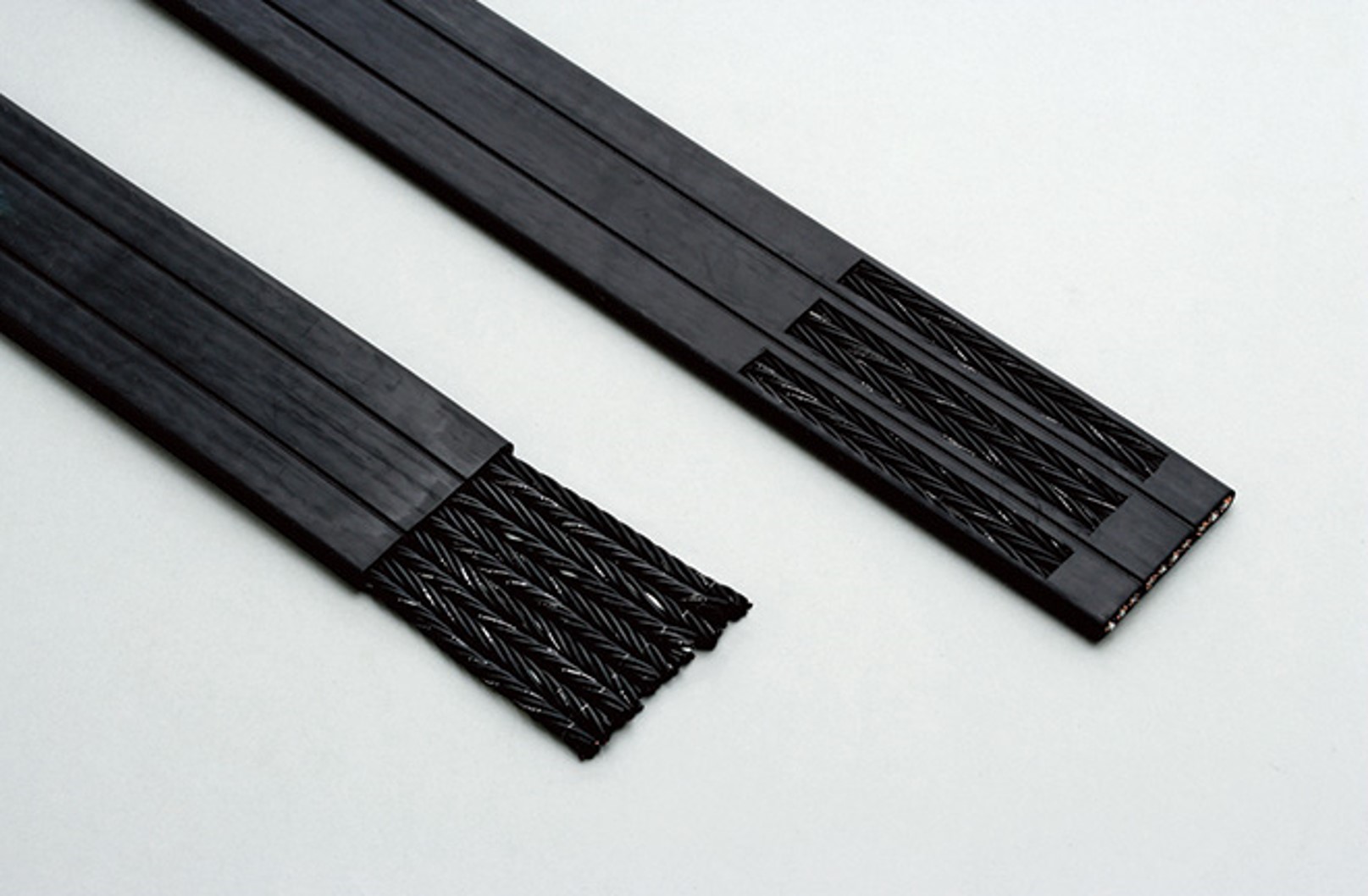 エレベータのカゴと機械室を結ぶエレベータ用ケーブルで固定される部分に使用される環境に配慮したケーブルです。